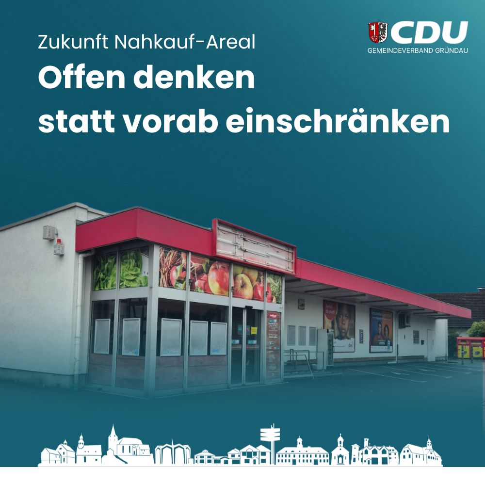 Die CDU-Fraktion in der Gemeindevertretung Gründau begrüßt die Zustimmung der Fraktionen SPD und FWG zur Entwicklung des gemeindlichen Areals rund um das ehemalige Nahkauf-Gebäude in Rothenbergen. Einigkeit besteht darin, dass das zentral gelegene Gelände einer nachhaltigen und tragfähigen Nutzung zugeführt werden soll.