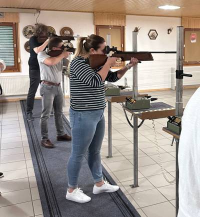 Entsprechend trafen sie die beiden Mannschaften zu ihren Terminen im Schützenhaus, um mit dem Luftgewehr auf die 10 Meter entfernten Ziele zu schießen und ihr können unter Beweis zu stellen.